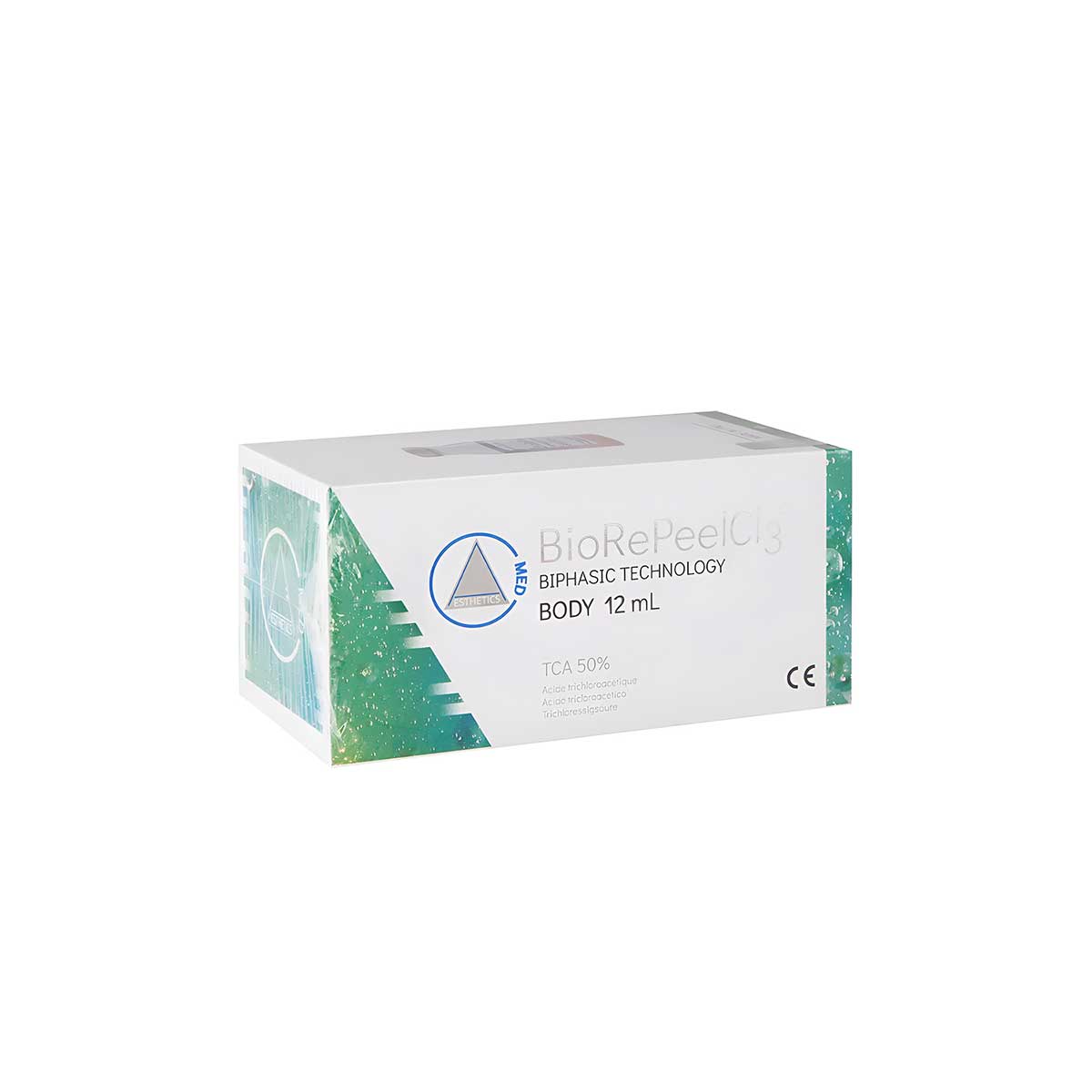 BioRePeelCl3 BODY is an advanced biphasic TCA peel formulated to rejuvenate and revitalize the skin across the entire body. Each box includes 3 vials (12ml each) with a powerful 50% trichloroacetic acid (TCA) concentration, designed to promote deep exfoliation, stimulate cell turnover, and improve overall skin texture.