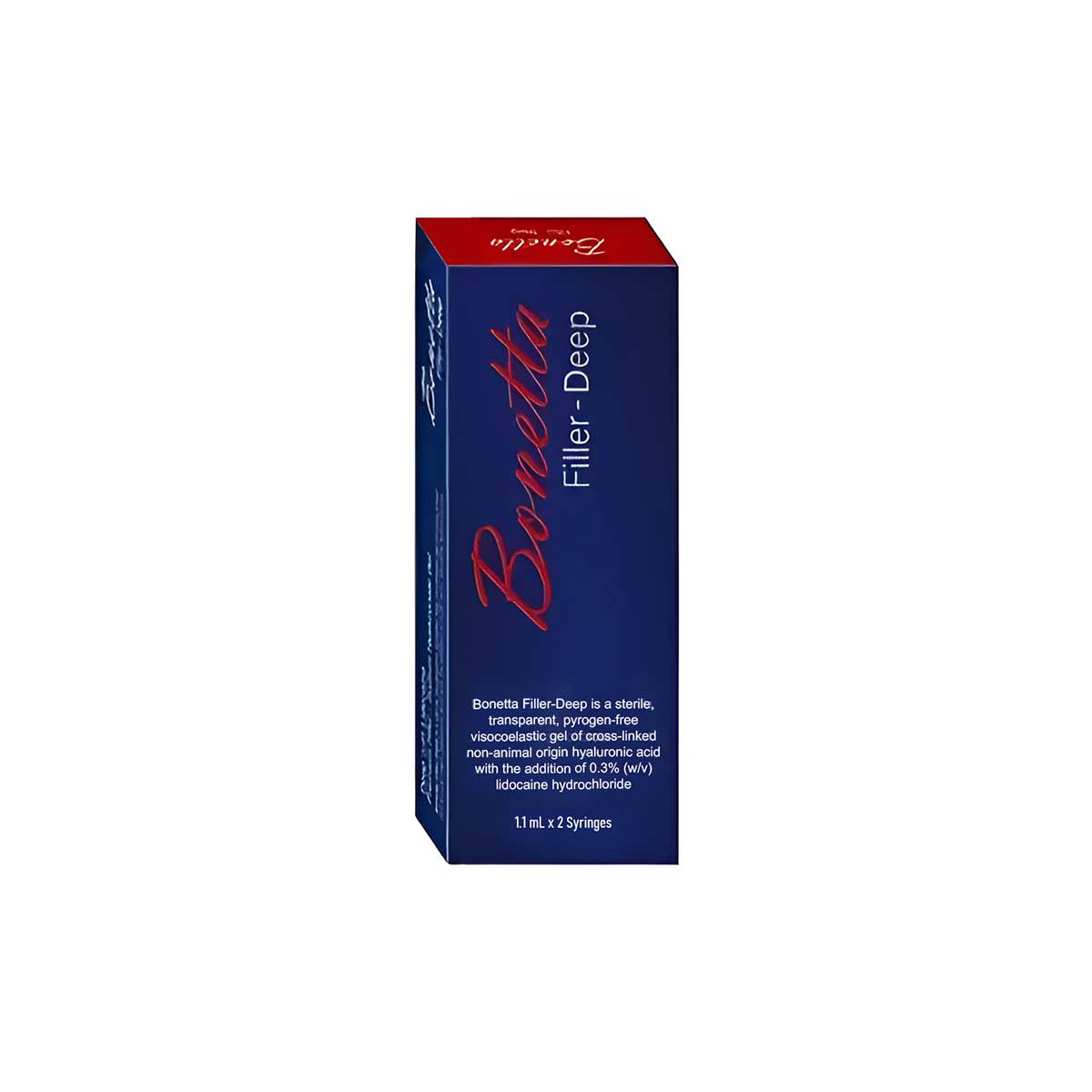 BONETTA DEEP is an advanced dermal filler formulated with cross-linked hyaluronic acid, specifically designed to treat deep facial wrinkles and restore volume in areas affected by age-related volume loss. Each box includes 1 prefilled syringe (1ml), ideal for precision contouring and structural correction.