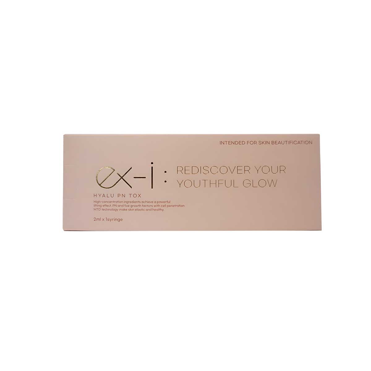 EX-I HYALU PN TOX is an advanced skin rejuvenation treatment formulated with hyaluronic acid and polynucleotides. Each pack contains 1 prefilled syringe (2ml), delivering a potent blend that deeply hydrates, repairs, and revitalizes the skin.